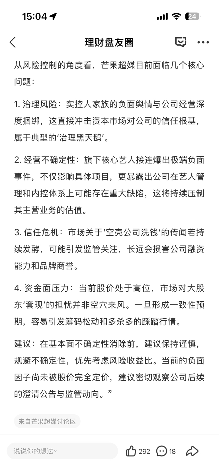 $芒果超媒(SZ300413)$ 关于这只股,看到的专业人士分析评估,适当规避风险,当然最终决策是看个人,本帖仅作参考