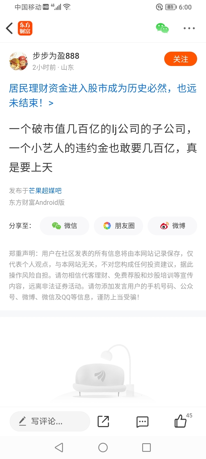 温馨提示: 1.根据《证券法》规定,禁止编造、传播虚假信息或者误导性信息,扰乱证券市场;2.用户在本社区发表的所有资料、言论等仅代表个人观点,与本网站立场无关,不对您构成任何投资建议。用户应基于自己的独立判断,自行决定证券投资并承担相应风险。《东方财富社区管理规定》