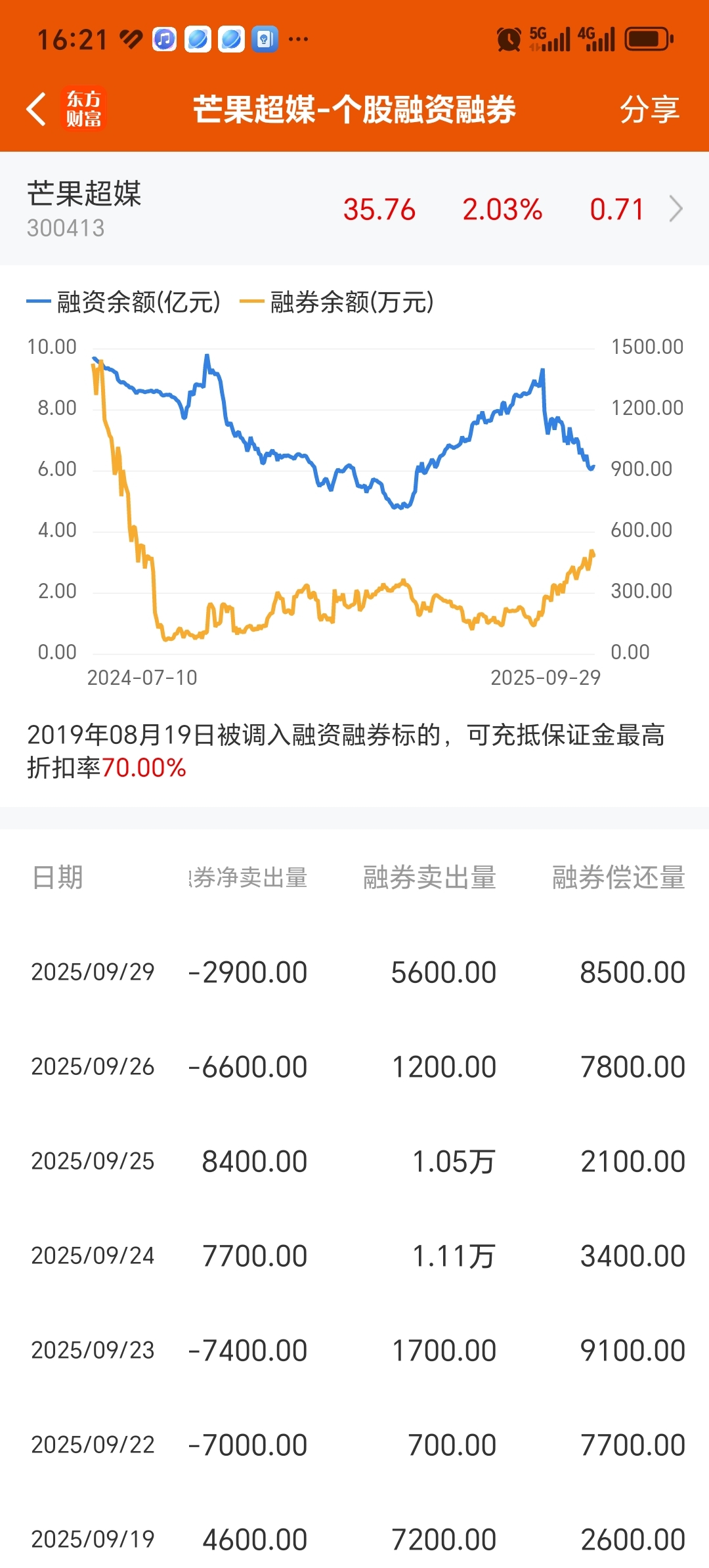 $芒果超媒(SZ300413)$ 融资融券余额代表什么呢