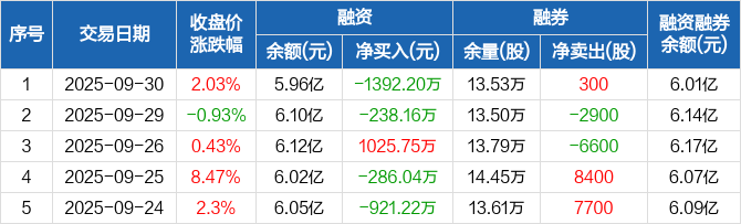 芒果超媒:融资净偿还1392.2万元,融资余额5.96亿元(09-30)