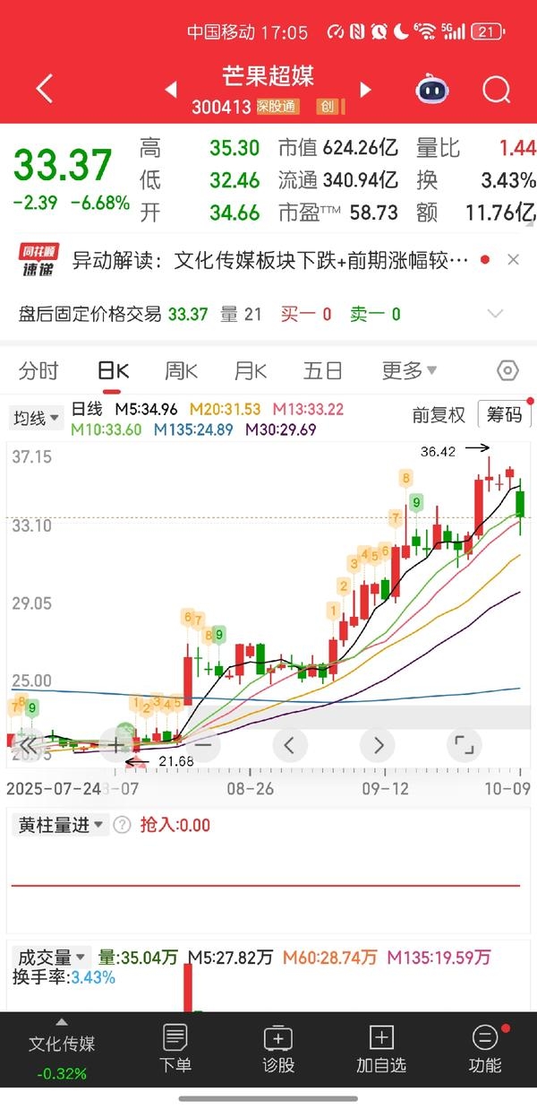 $芒果超媒(SZ300413)$ 大绿柱子,先跑为上计