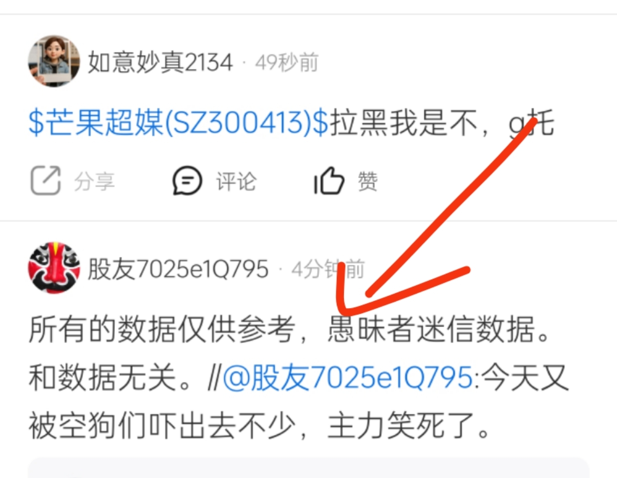 $芒果超媒(SZ300413)$ g托拉黑我,不敢正面扛