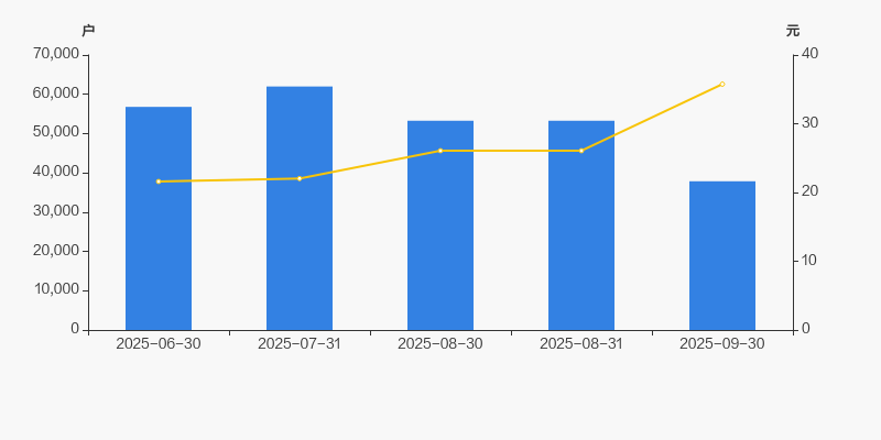 2025年6月30日至今,公司股东户数显著下降,区间跌幅为33.34%。2025年6月30日至2025年9月30日区间股价上涨65.59%。