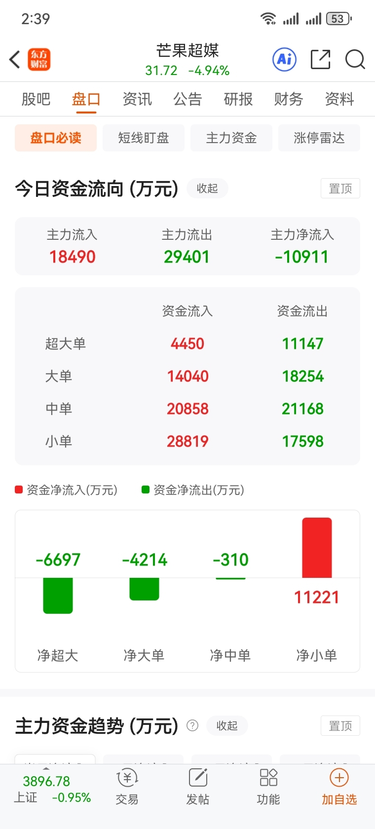 $芒果超媒(SZ300413)$ 主力在跑,都是小散在接盘