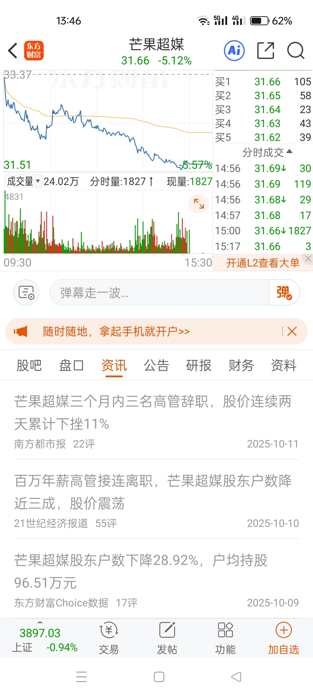 $芒果超媒(SZ300413)$ 国企人员是能撤就撤的吗?会不会被调到哪里了?#炒股日记# #股市怎么看# #收盘点评# #投资干货#