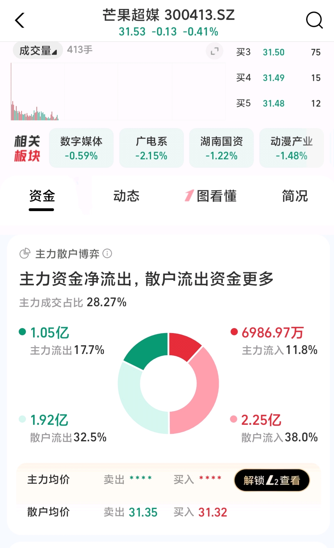 $芒果超媒(SZ300413)$ 主力净流出哦