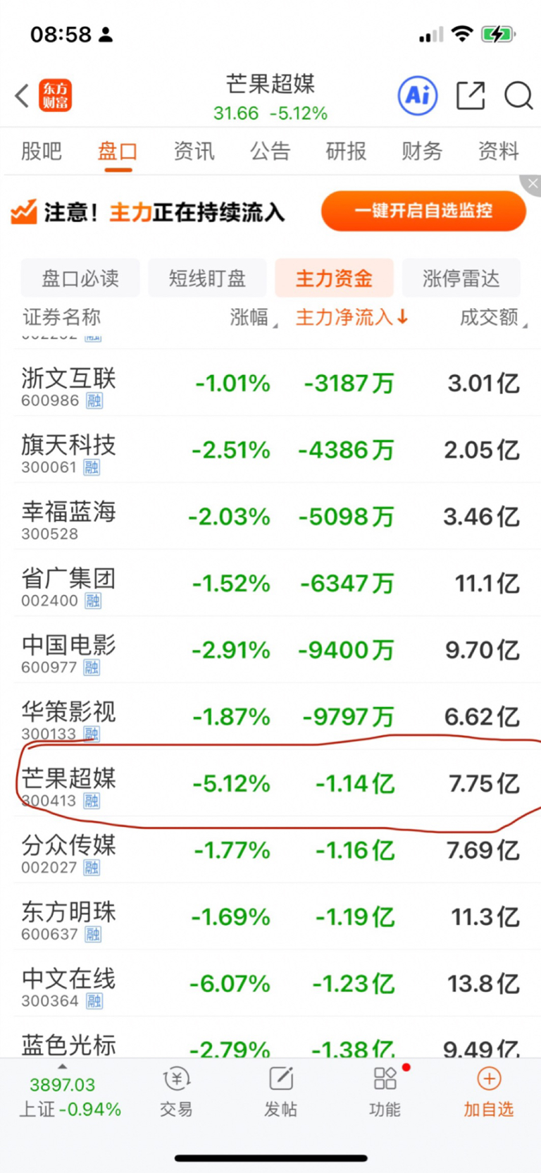 $芒果超媒(SZ300413)$ 大家坚持买入,主力虽然跑了但社保基金还在啊,都跑了我社保钱保不住了怎么办,只要有人买不就跌不下来,散户继续撑一撑