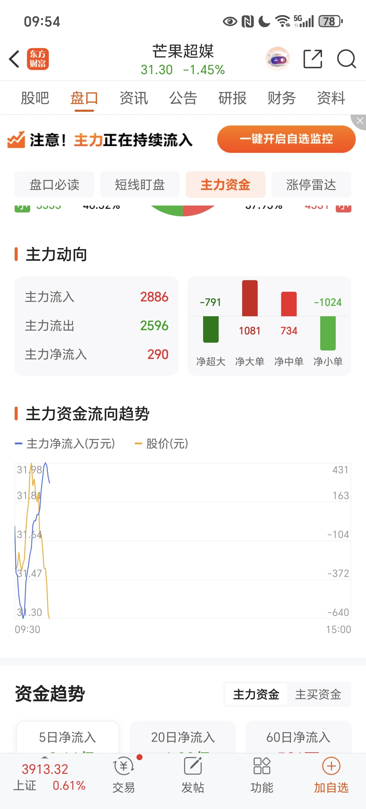 刚点进去主力流出是2300多,看了会儿涨跌不到两分钟就变2500多