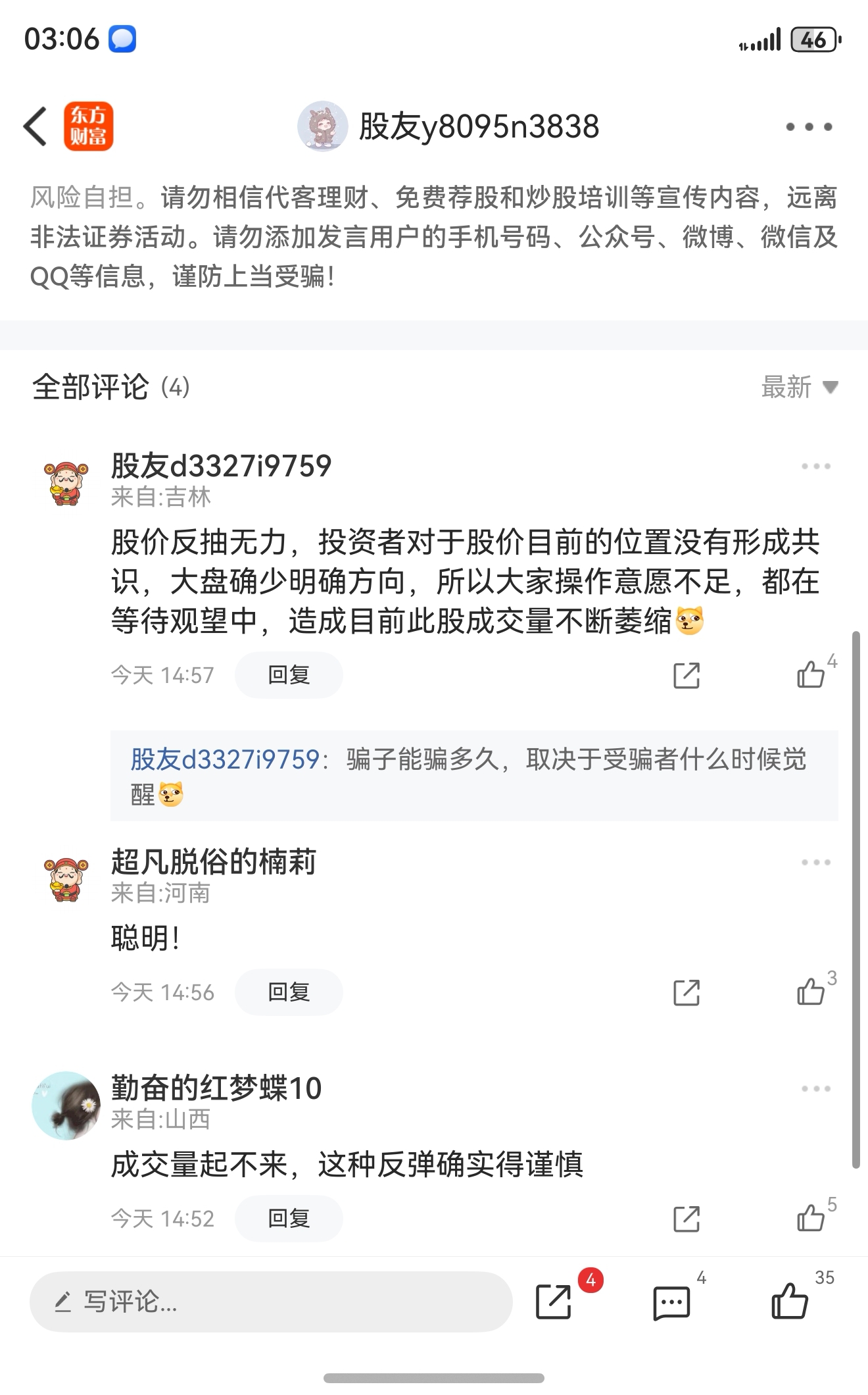 温馨提示: 1.根据《证券法》规定,禁止编造、传播虚假信息或者误导性信息,扰乱证券市场;2.用户在本社区发表的所有资料、言论等仅代表个人观点,与本网站立场无关,不对您构成任何投资建议。用户应基于自己的独立判断,自行决定证券投资并承担相应风险。《东方财富社区管理规定》