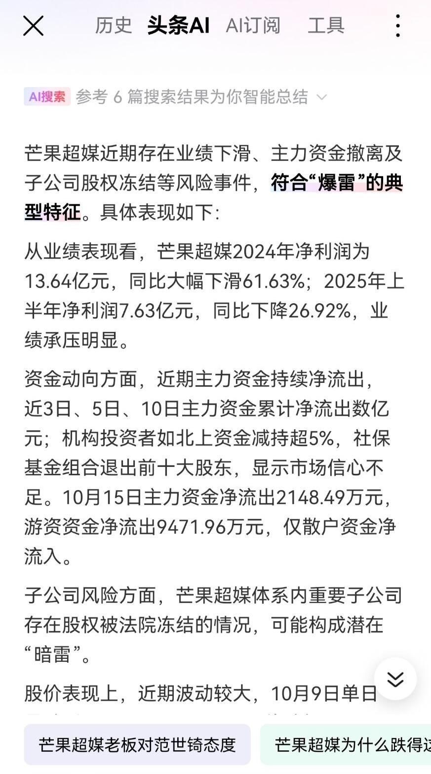 $芒果超媒(SZ300413)$ 最近怎么?这么多人看空?听说连李湘都来护盘了?我还不看好这支股了吧!暂时先观望观望