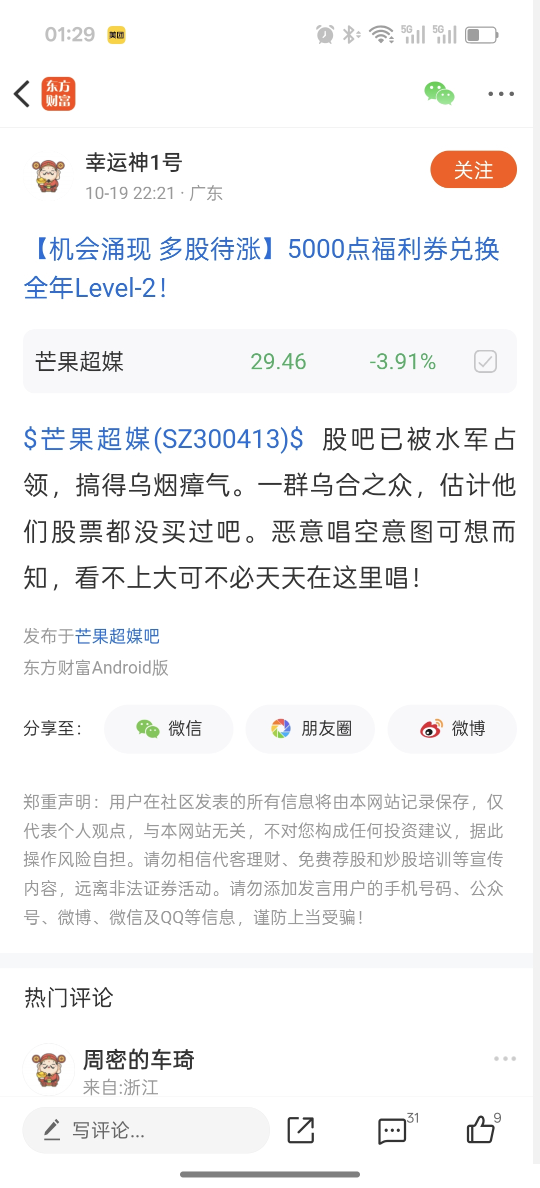 温馨提示: 1.根据《证券法》规定,禁止编造、传播虚假信息或者误导性信息,扰乱证券市场;2.用户在本社区发表的所有资料、言论等仅代表个人观点,与本网站立场无关,不对您构成任何投资建议。用户应基于自己的独立判断,自行决定证券投资并承担相应风险。《东方财富社区管理规定》