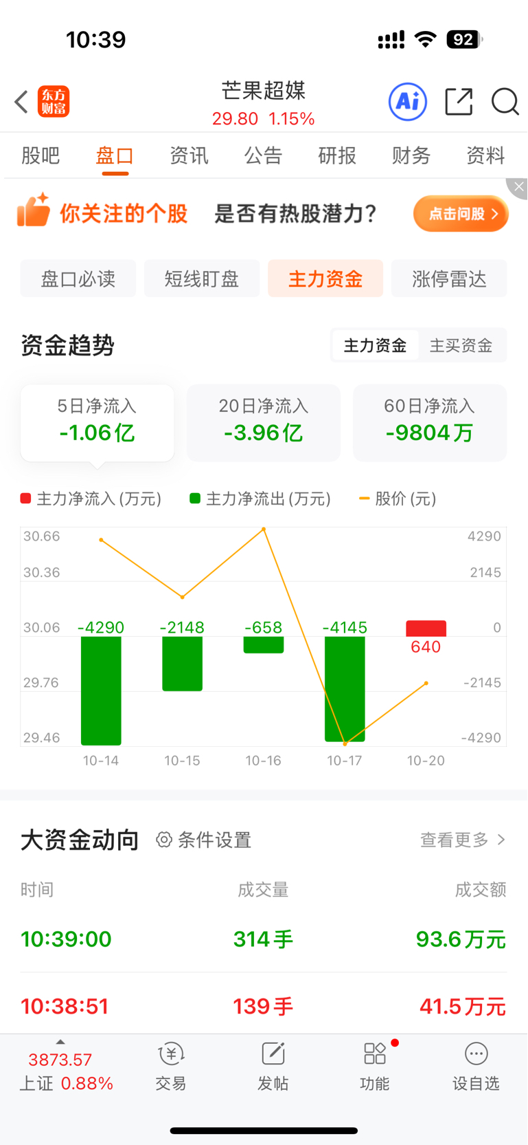 $芒果超媒(SZ300413)$ 主力一直在流出