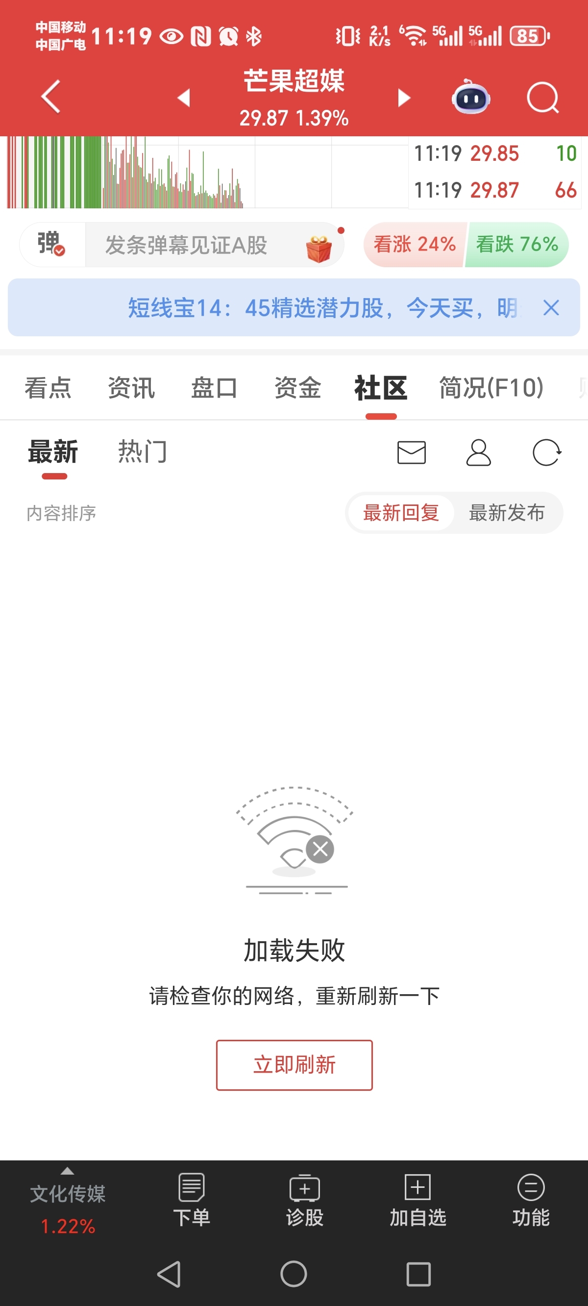 $芒果超媒(SZ300413)$ 看看隔壁平台,做啥了心虚成这样?其他股社区正常,咋就你这个网络有问题?