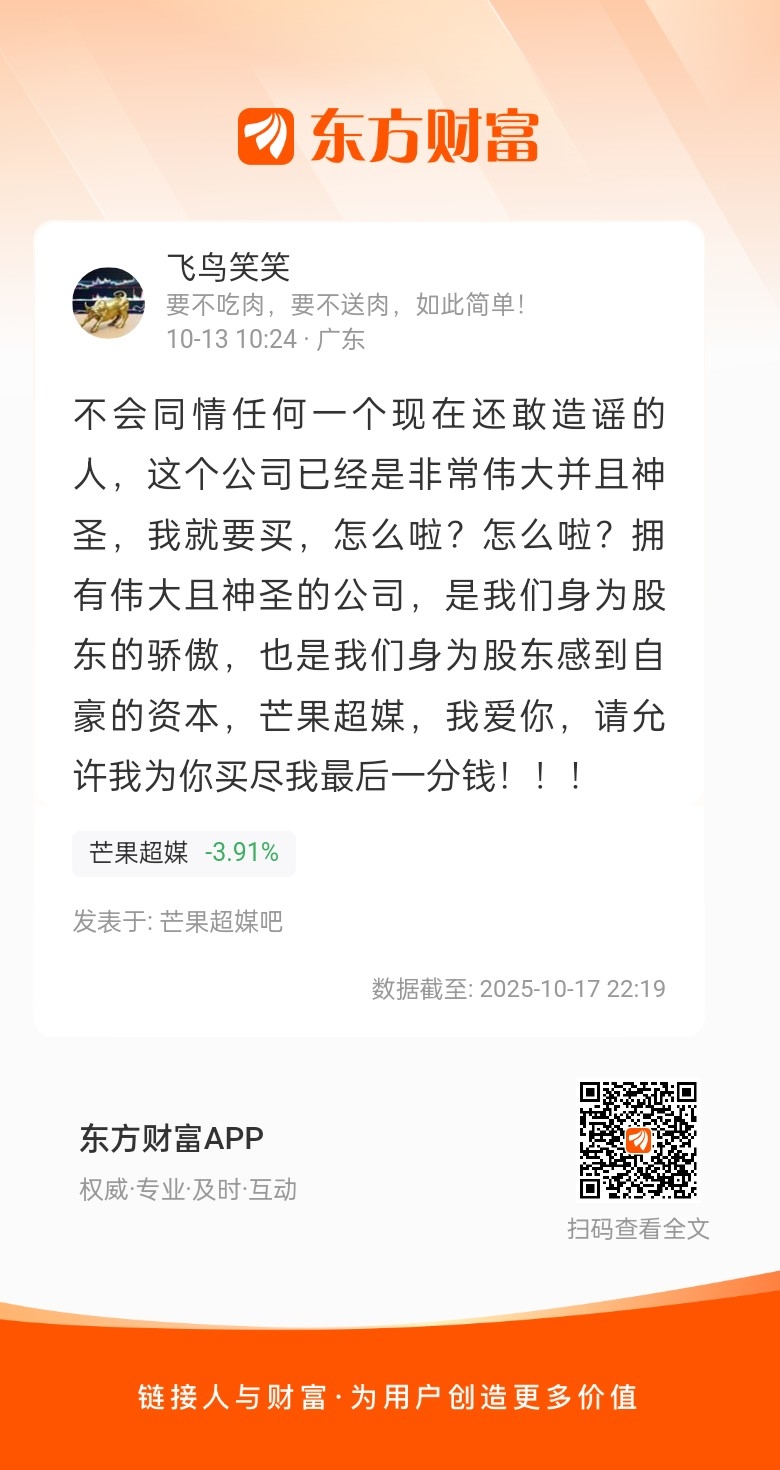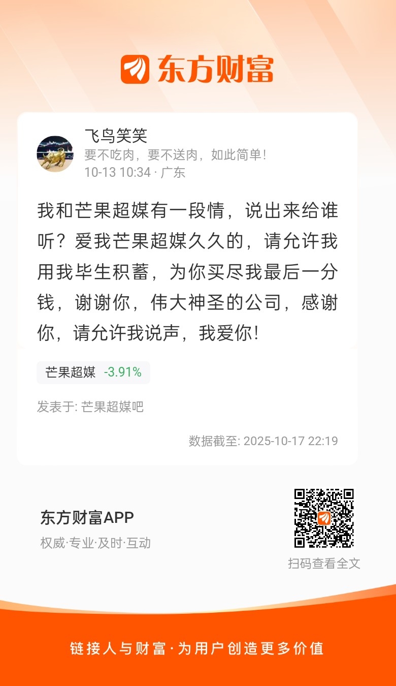 $芒果超媒(SZ300413)$ 唱多的水军们,笑笑已经说出你们的心声,你们一定要倾家荡产的买入啊,为你们的爱股花光最后一分钱,不买都对不起你们发的帖子熬的夜班,加油哦,我们普通的人民群众就算了,看你们吹拉弹唱就可以了。