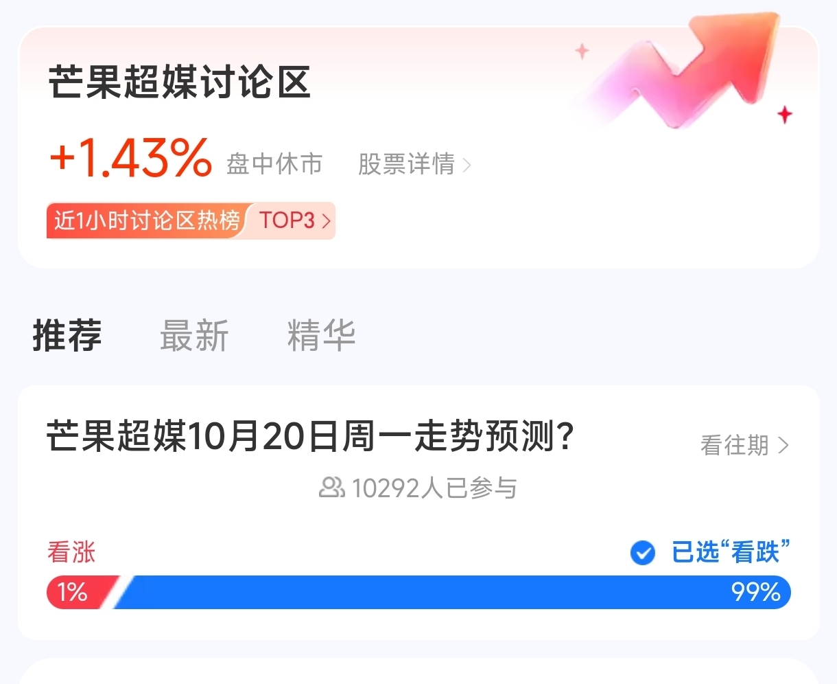 $芒果超媒(SZ300413)$ 第一次看见全民看空的股票
