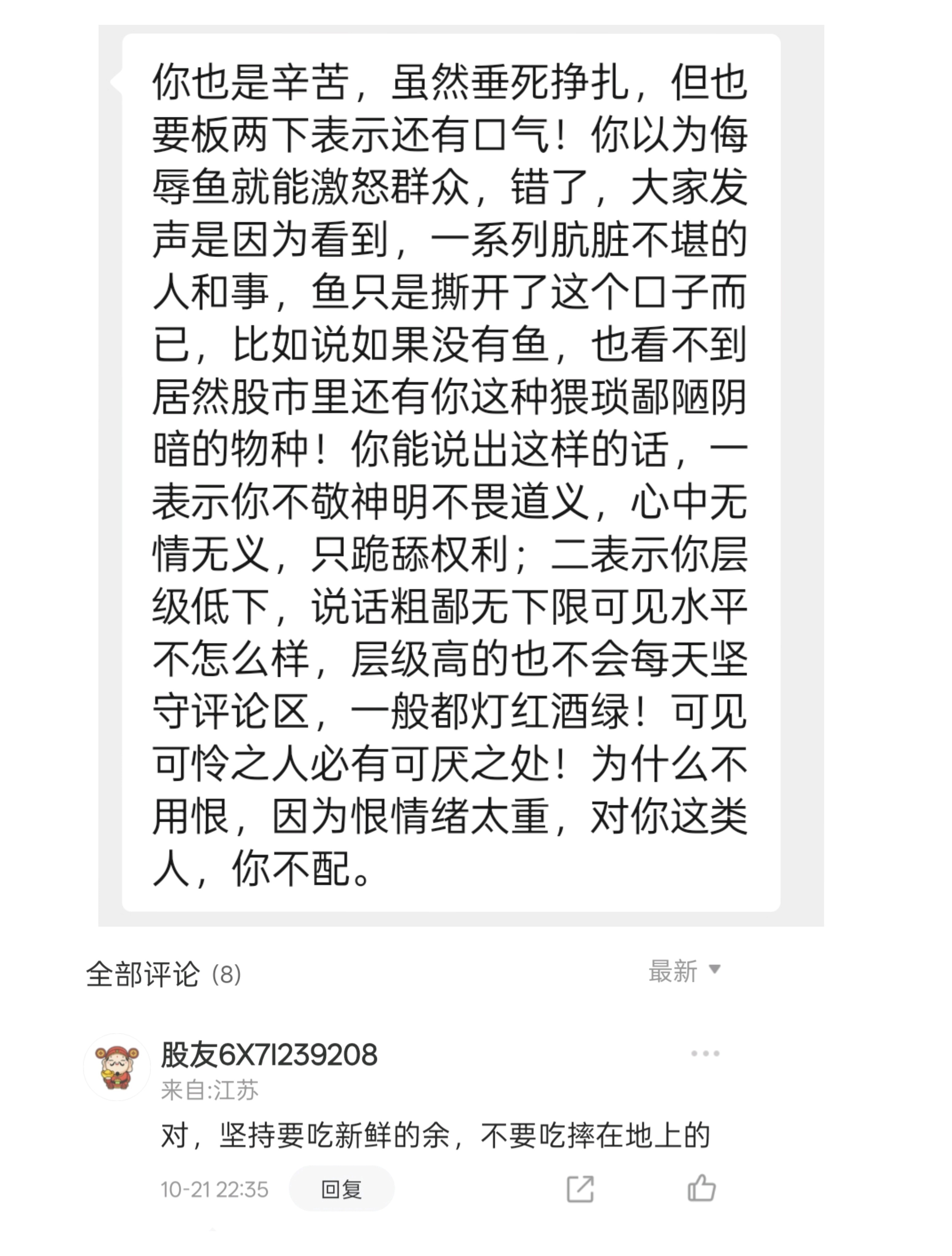 温馨提示: 1.根据《证券法》规定,禁止编造、传播虚假信息或者误导性信息,扰乱证券市场;2.用户在本社区发表的所有资料、言论等仅代表个人观点,与本网站立场无关,不对您构成任何投资建议。用户应基于自己的独立判断,自行决定证券投资并承担相应风险。《东方财富社区管理规定》