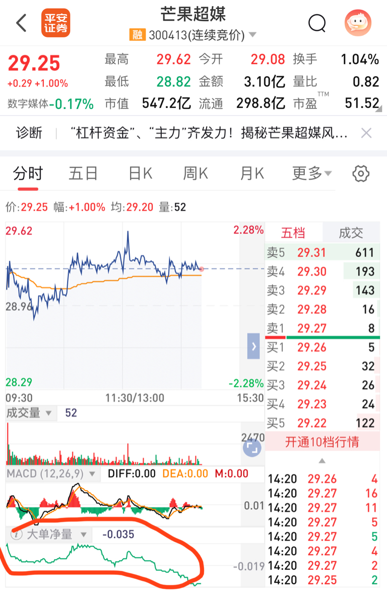 $芒果超媒(SZ300413)$ 股价走势与大单净量相反,老股民都懂是怎么回事