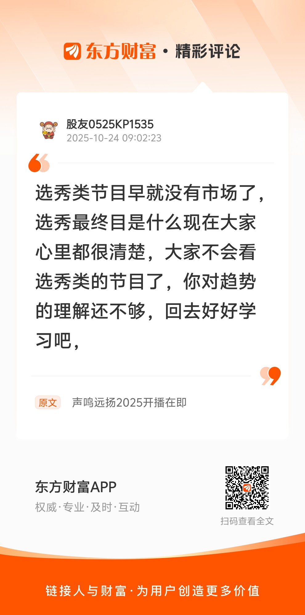 市场需求:当前观众对于音乐类综艺节目有着持续的需求,市场上需要更多新颖、多元化的歌唱节目来满足观众日益多样化的审美。《声鸣远扬2025》的特色和亮点恰好符合市场的这一需求趋势,有机会吸引大量的观众。