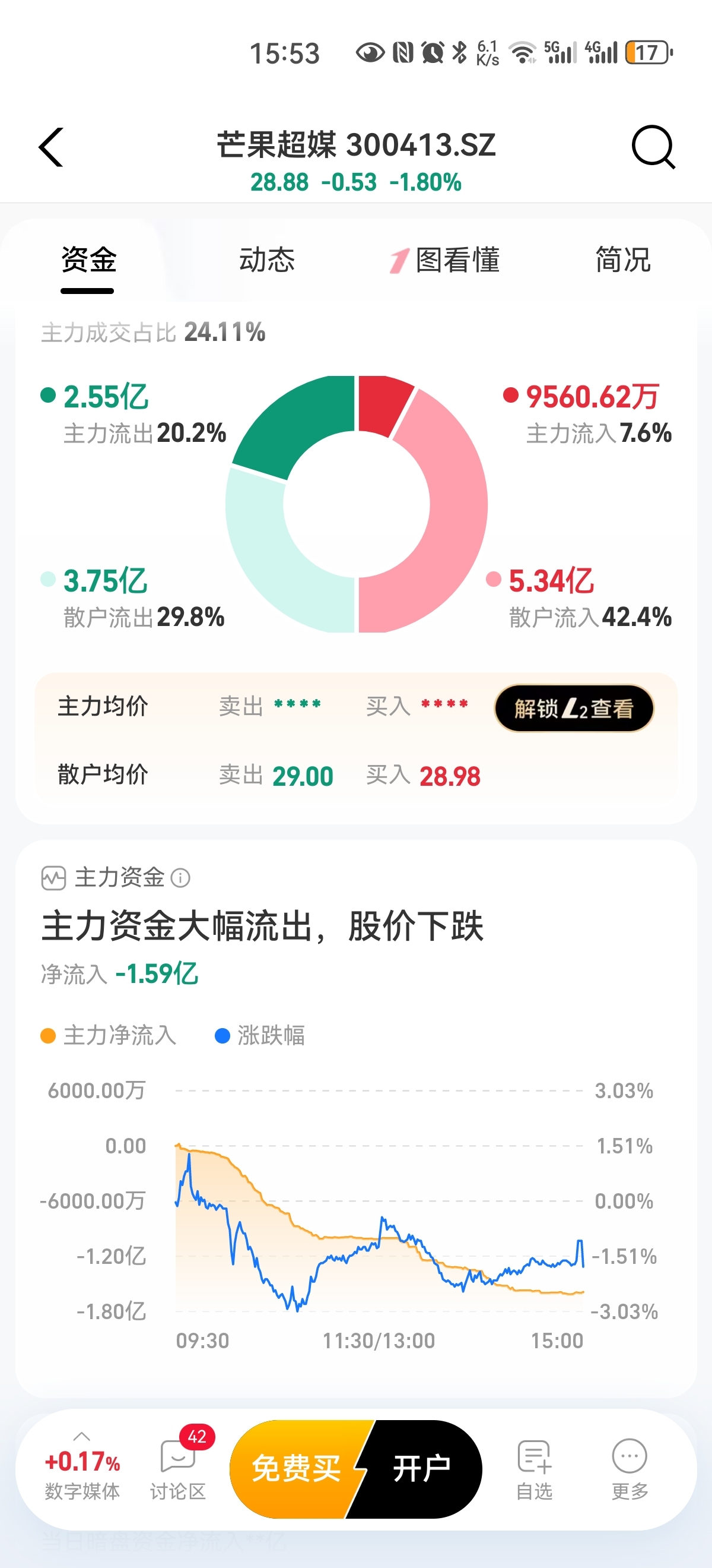 $芒果超媒(SZ300413)$ 主力资金逃跑。小伞们千万别上当当韭菜哦。