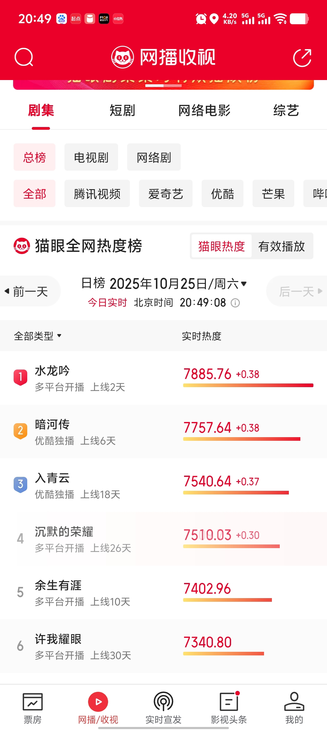 $芒果超媒(SZ300413)$ 水龙吟猫眼热度排名第一了 下周有一个涨停 自动忽略喷子