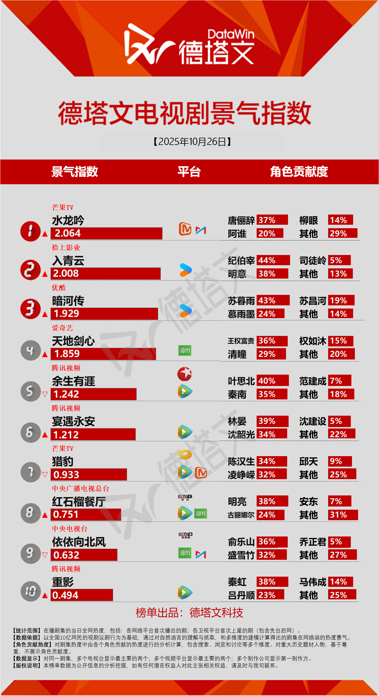 10月24日,《水龙吟》在芒果TV开播,开播24小时播放量达到1.4亿,收视以1.87%的成绩登顶全国同时段第一