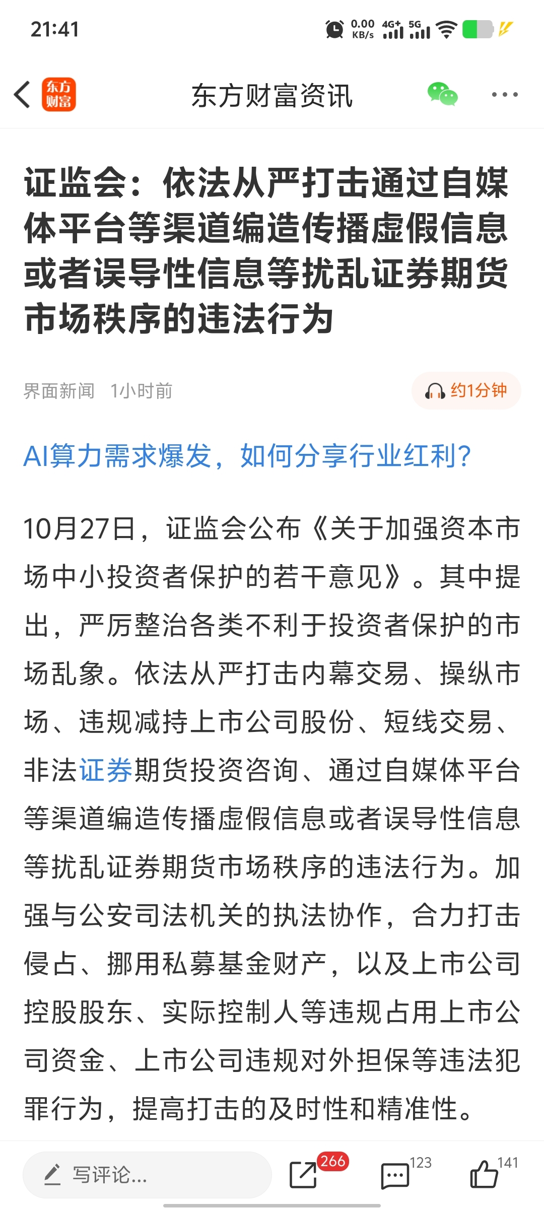 温馨提示: 1.根据《证券法》规定,禁止编造、传播虚假信息或者误导性信息,扰乱证券市场;2.用户在本社区发表的所有资料、言论等仅代表个人观点,与本网站立场无关,不对您构成任何投资建议。用户应基于自己的独立判断,自行决定证券投资并承担相应风险。《东方财富社区管理规定》