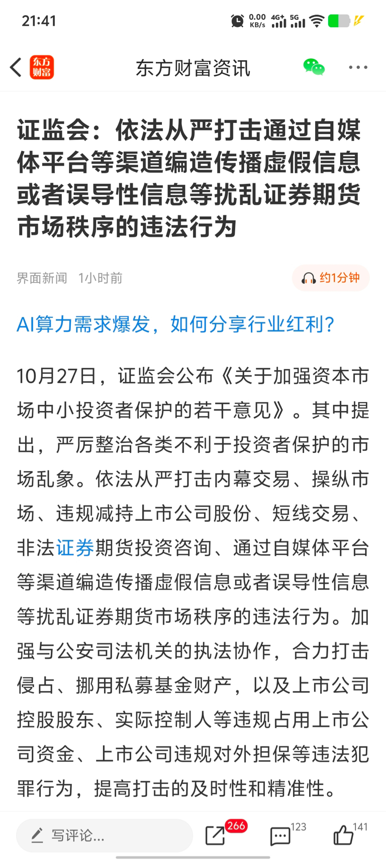 温馨提示: 1.根据《证券法》规定,禁止编造、传播虚假信息或者误导性信息,扰乱证券市场;2.用户在本社区发表的所有资料、言论等仅代表个人观点,与本网站立场无关,不对您构成任何投资建议。用户应基于自己的独立判断,自行决定证券投资并承担相应风险。《东方财富社区管理规定》
