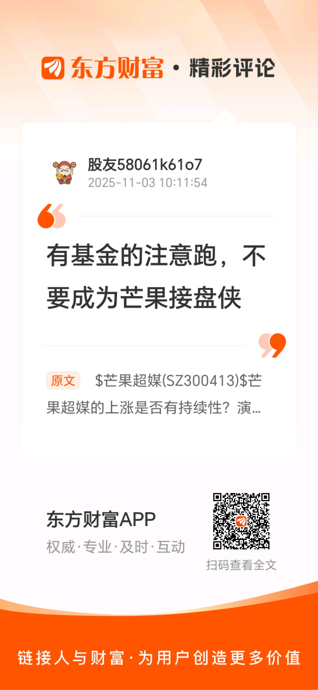 买基金的看下哦//@股友58061k61o7 :有基金的注意跑,不要成为芒果接盘侠