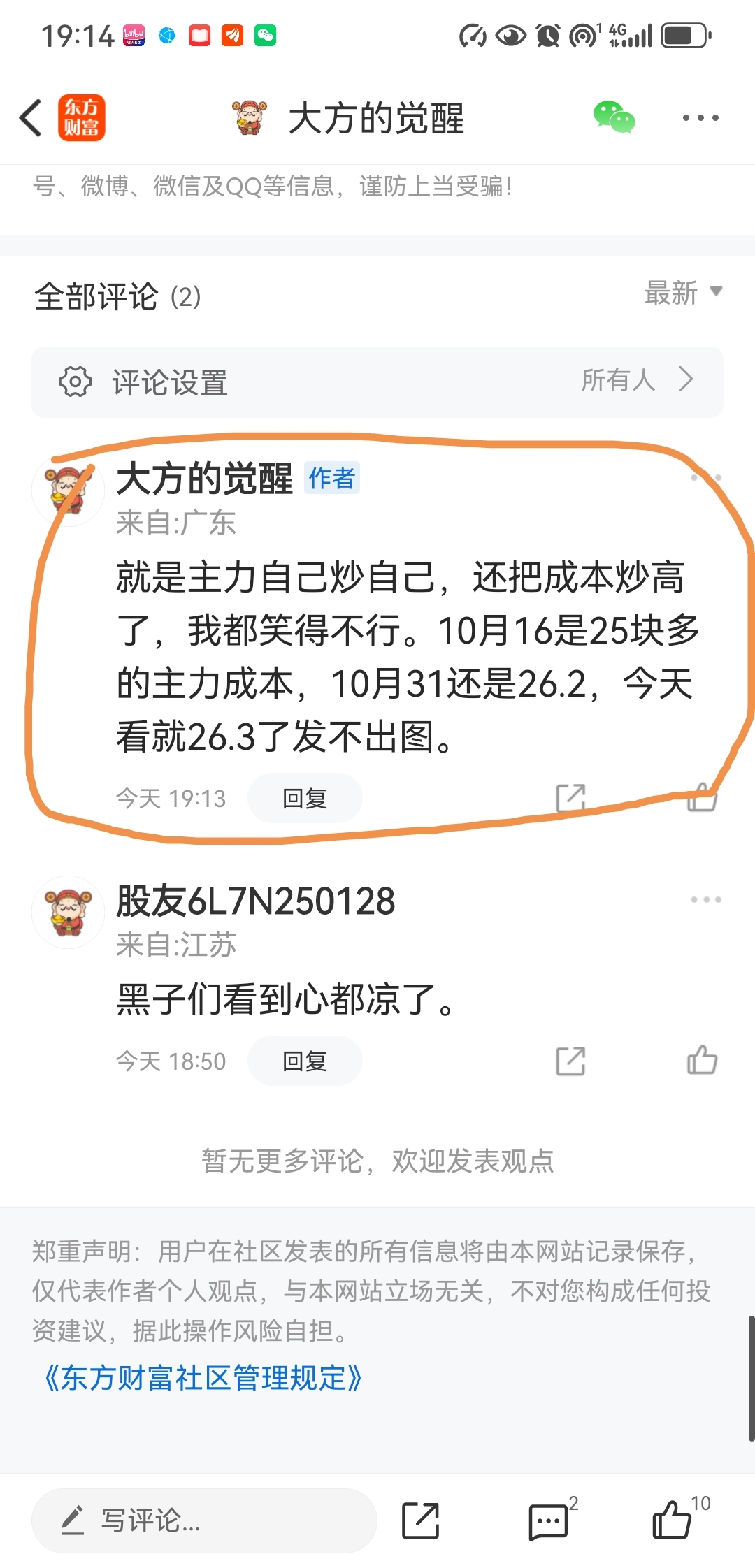 温馨提示: 1.根据《证券法》规定,禁止编造、传播虚假信息或者误导性信息,扰乱证券市场;2.用户在本社区发表的所有资料、言论等仅代表个人观点,与本网站立场无关,不对您构成任何投资建议。用户应基于自己的独立判断,自行决定证券投资并承担相应风险。《东方财富社区管理规定》
