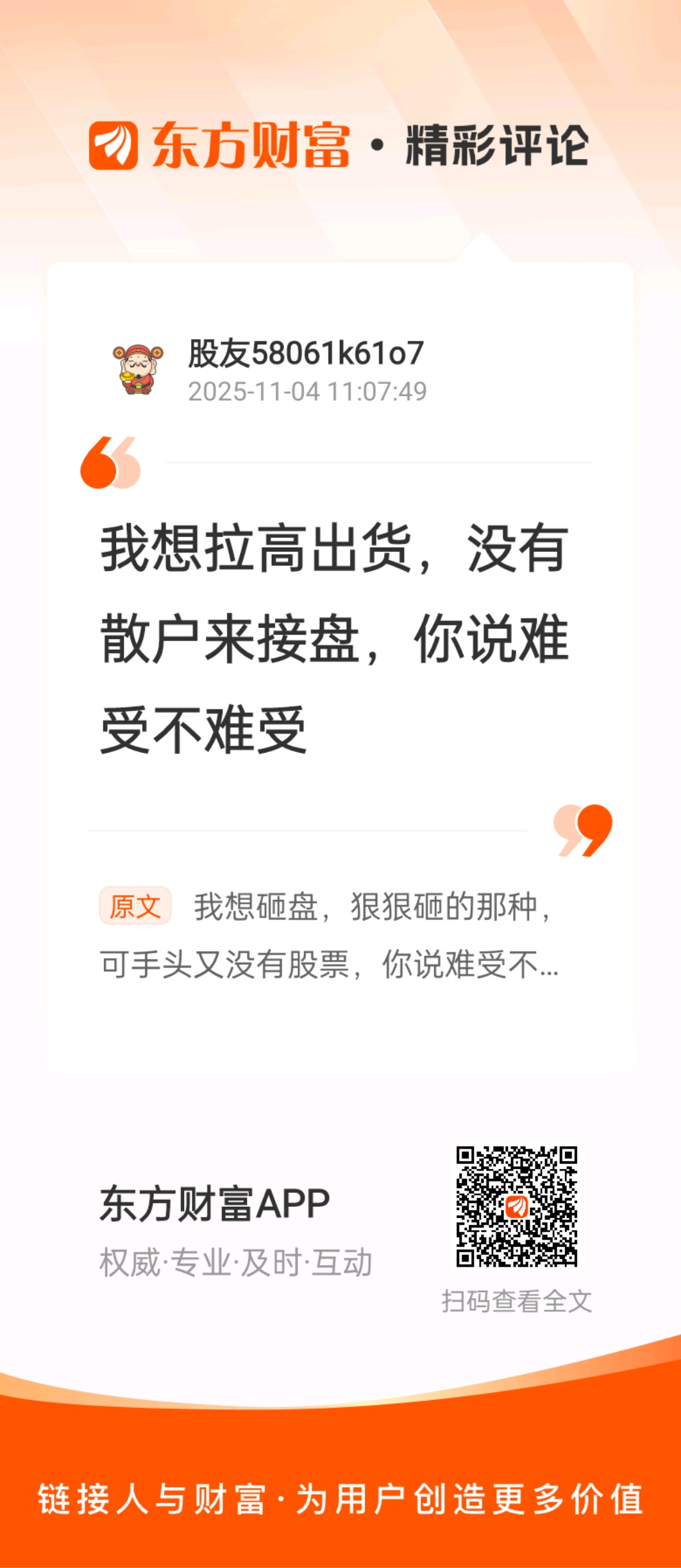温馨提示: 1.根据《证券法》规定,禁止编造、传播虚假信息或者误导性信息,扰乱证券市场;2.用户在本社区发表的所有资料、言论等仅代表个人观点,与本网站立场无关,不对您构成任何投资建议。用户应基于自己的独立判断,自行决定证券投资并承担相应风险。《东方财富社区管理规定》