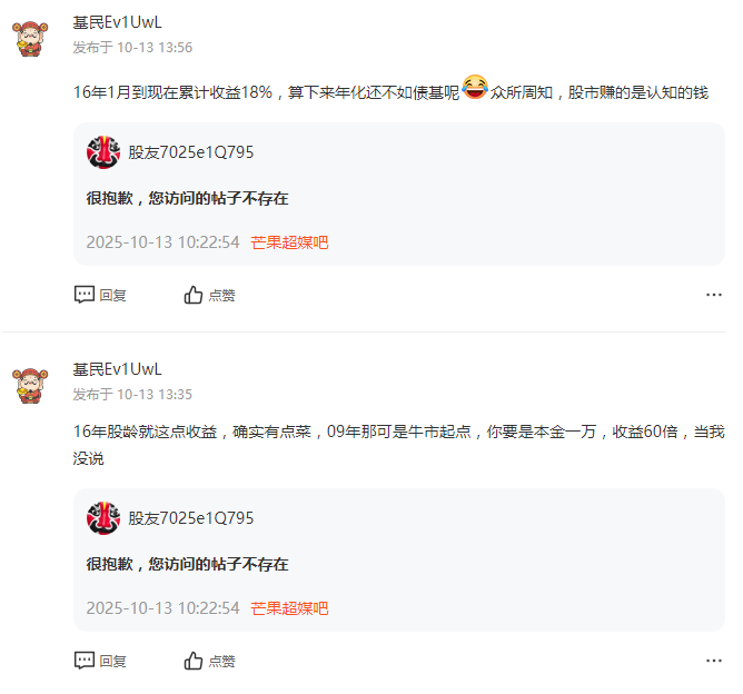 他10月13号发帖,自爆自己16年至今的账户总收益率18%,一共赚60W,我当时评论了,但现在他把这条帖子删了,为啥也删了呢?好难猜啊。