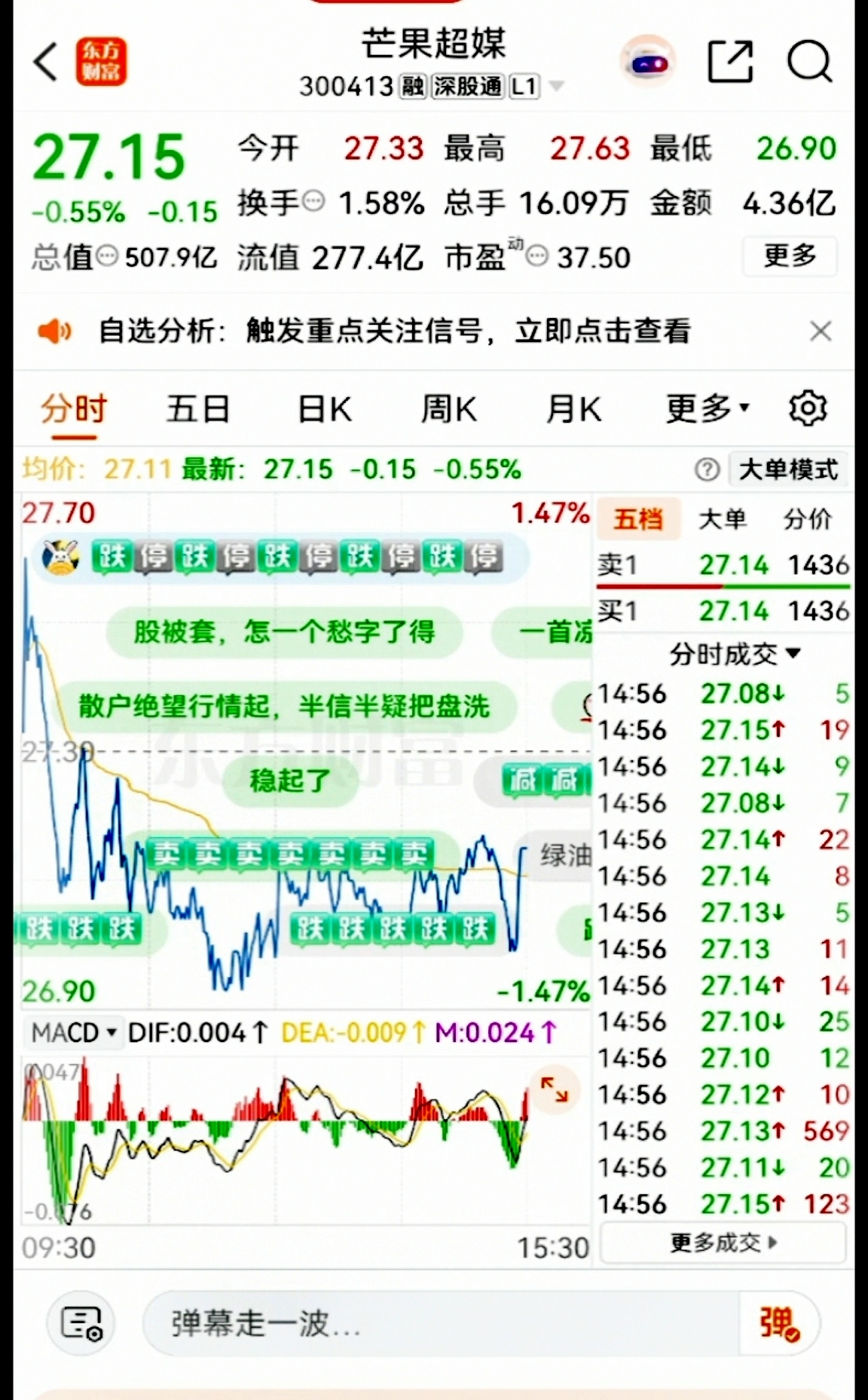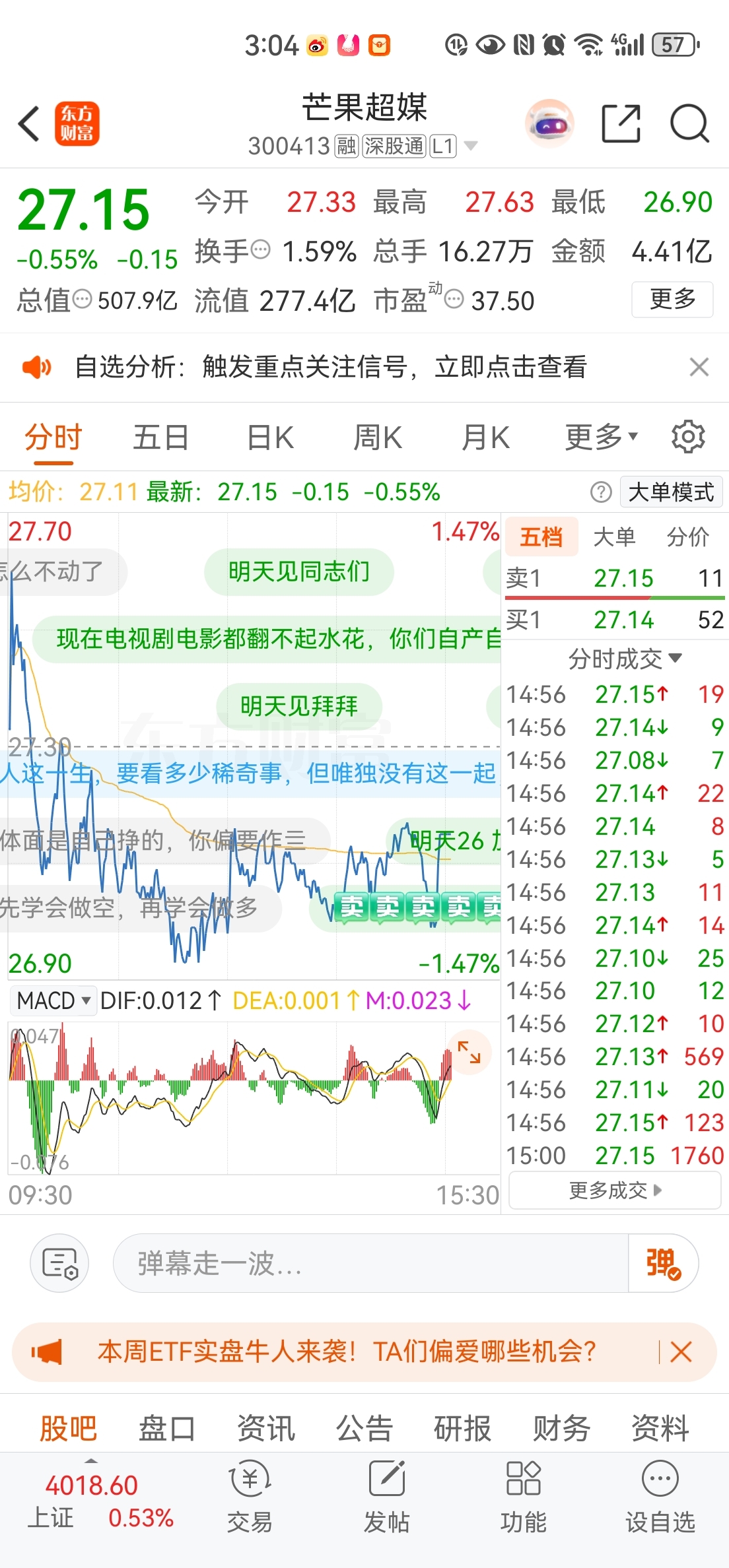 $芒果超媒(SZ300413)$   #收盘点评#   #复盘记录#   #股市怎么看#   菜园子绝对是不简单,盘口左手倒右手对倒迹象如此明目张胆连续几周了?