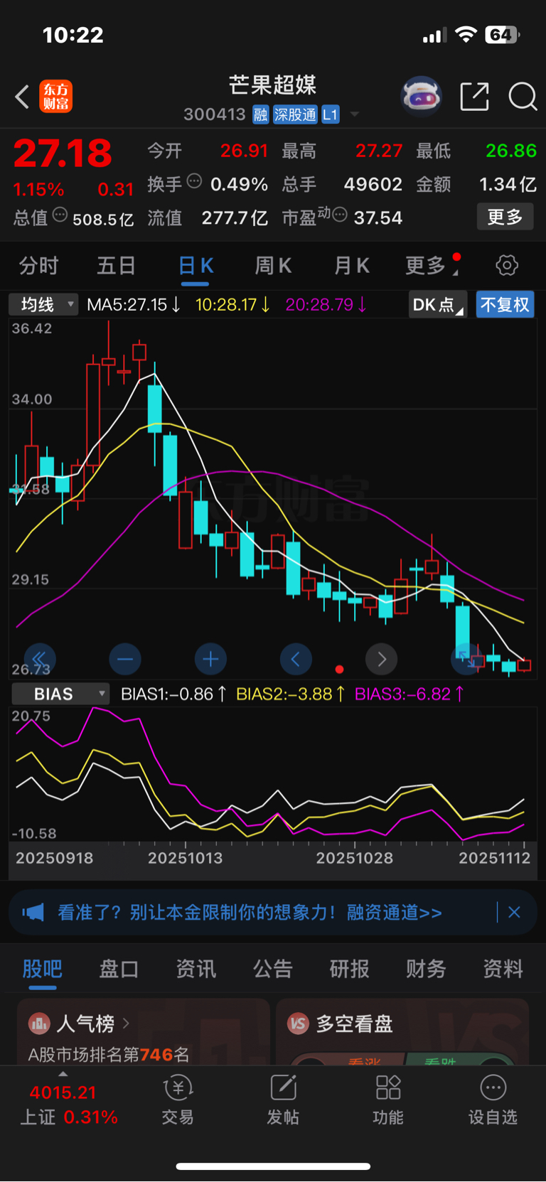 $芒果超媒(SZ300413)$ 一山更比一山低
