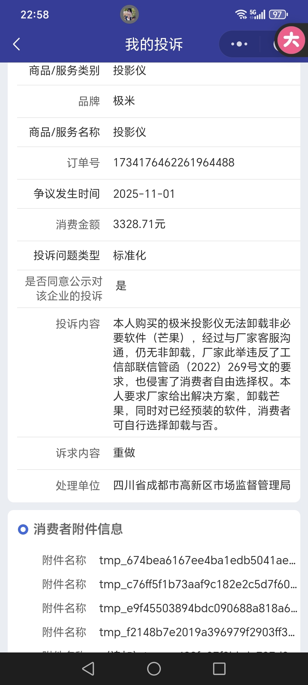 我只是搬运工,看到有网友成功卸载了投影仪预装的芒果APP,投诉的多了合作商心理会
