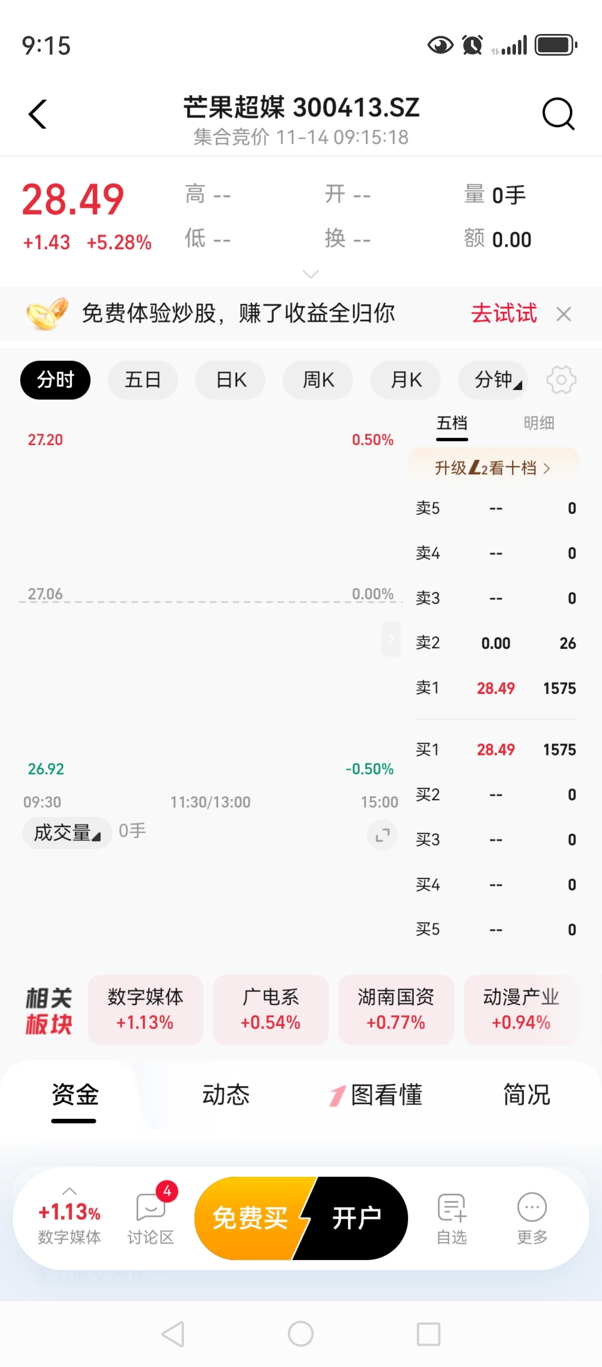 $芒果超媒(SZ300413)$ 这股太吓人了 早上开盘是这样 现在掉的多 投资需谨慎 谨防割韭菜