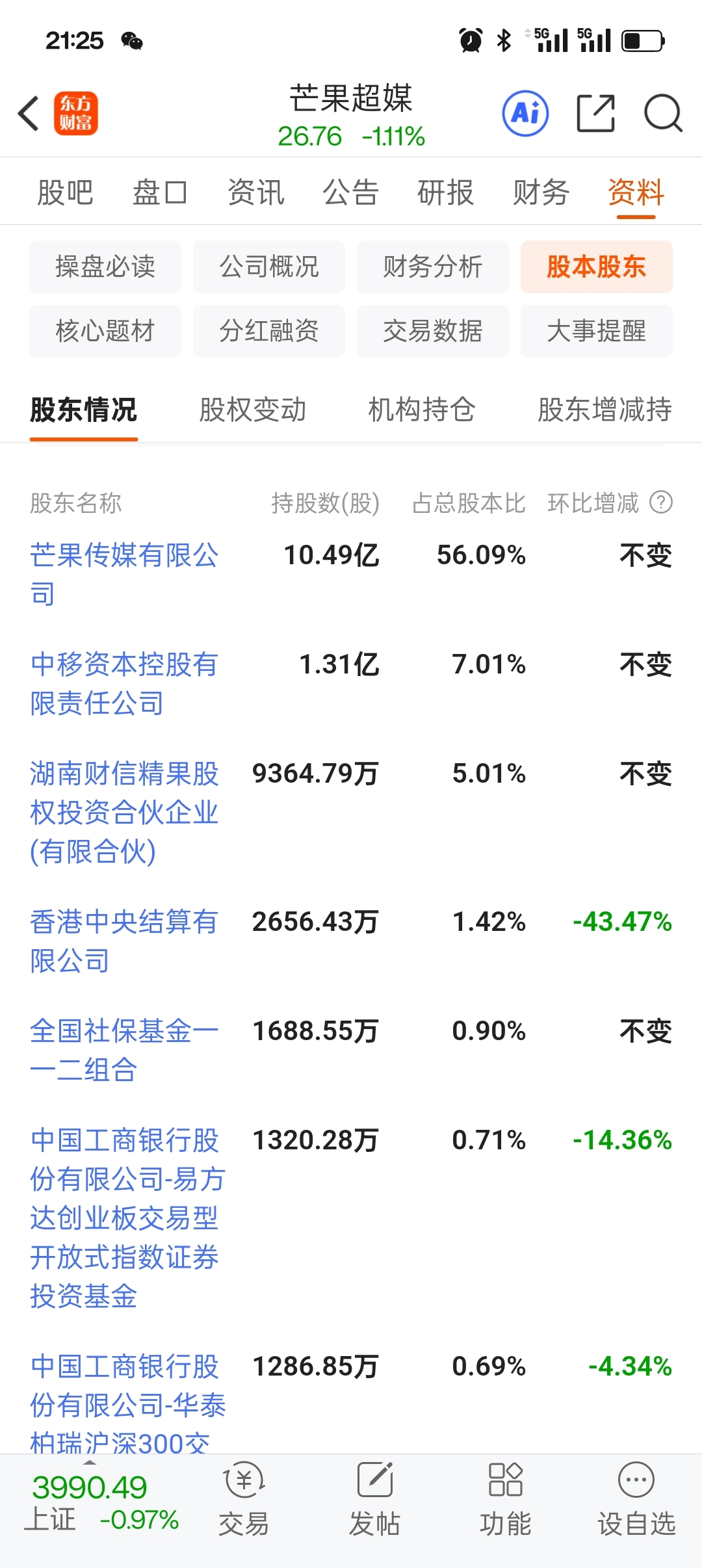 $芒果超媒(SZ300413)$ 谁说社保跑了,社保不是还在里面吗