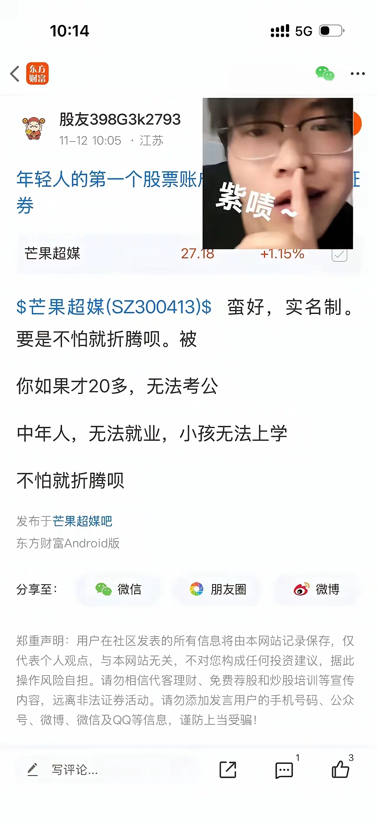 $芒果超媒(SZ300413)$ 每天看看养养眼,夸我们的我还留着呢!