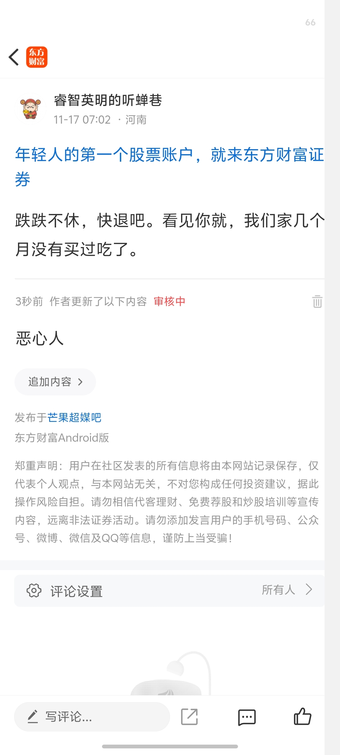 第一次见股吧还审核的,长见识了。