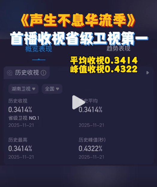 《声生不息·华流季》21日在芒果台、芒果TV首播!酷云实时收视率峰值0.4322,排名省级卫视第一位,又是一档爆款音综呀!