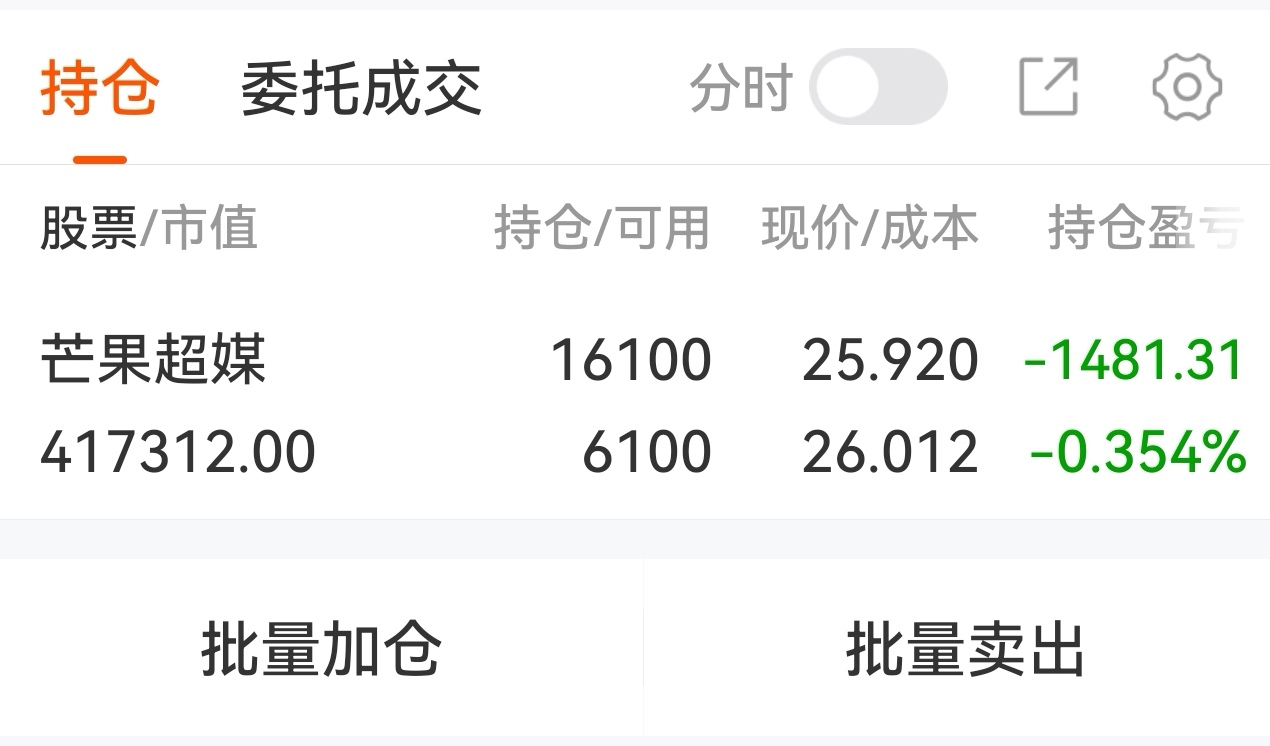 $芒果超媒(SZ300413)$ 又准备下杀了吗?在杀我可真清仓了我!!!