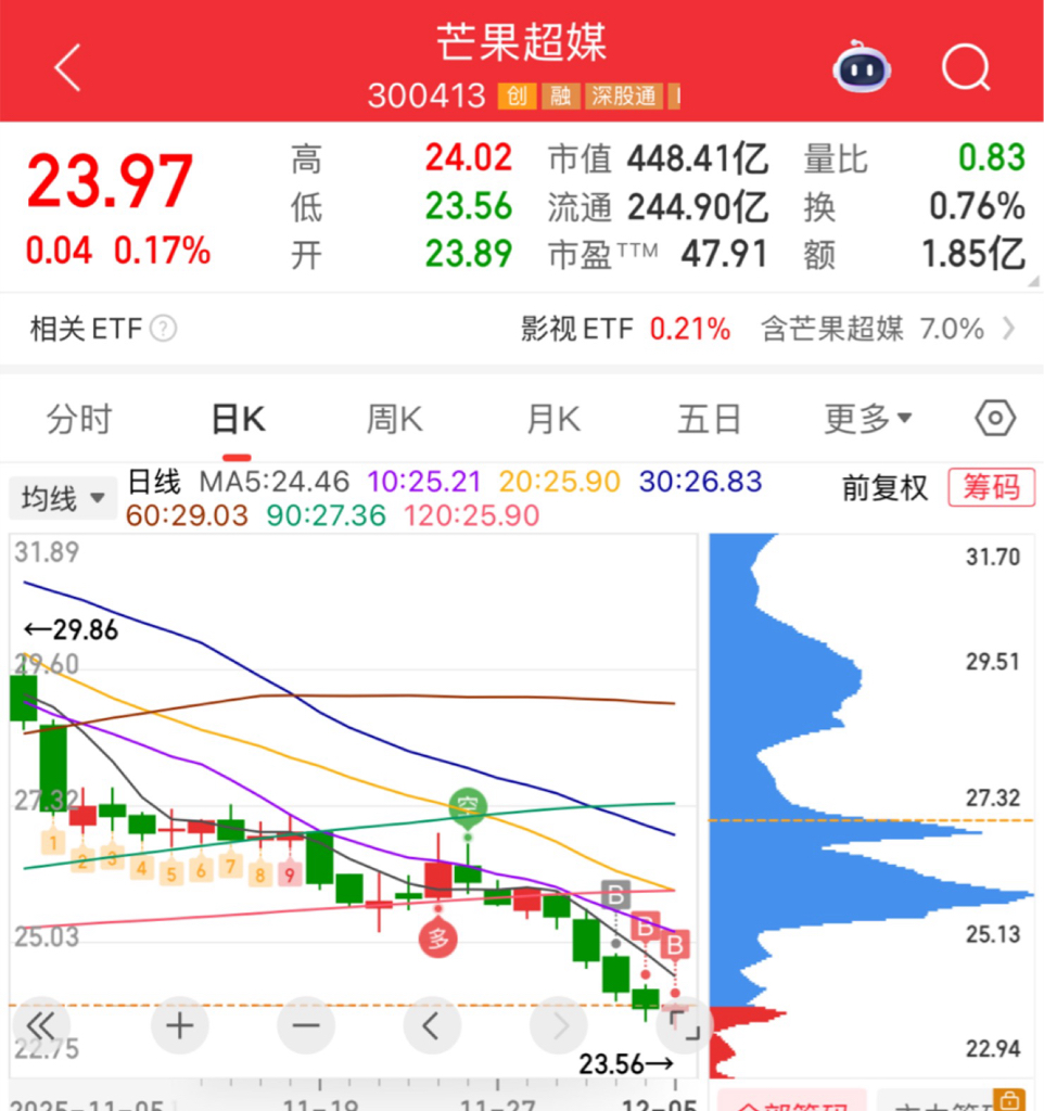$芒果超媒(SZ300413)$ 大家都不看好的时候买入