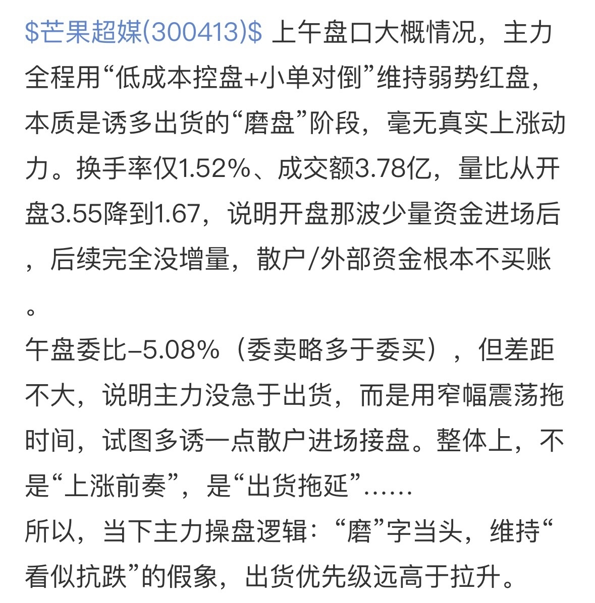 $芒果超媒(SZ300413)$ 大家可以学习一下磨盘哟~