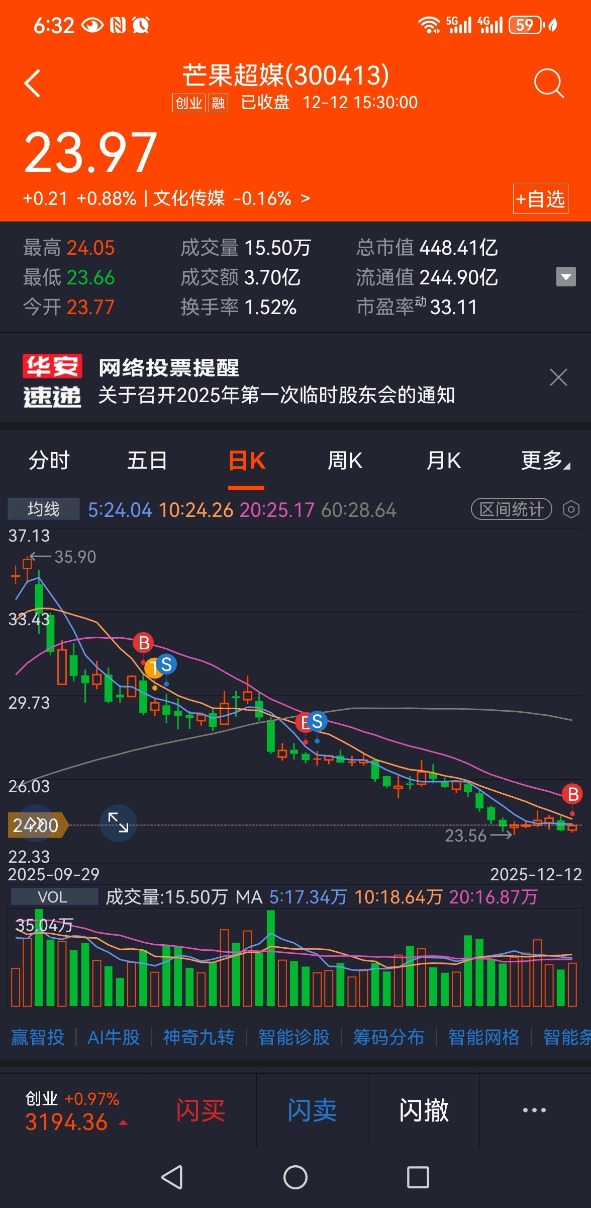$芒果超媒(SZ300413)$ 看空就别买,看多就买,涨跌随意,股市本就是一个概率论,懂得越多,概率越大,心态平和,下跌套利,也可能损耗