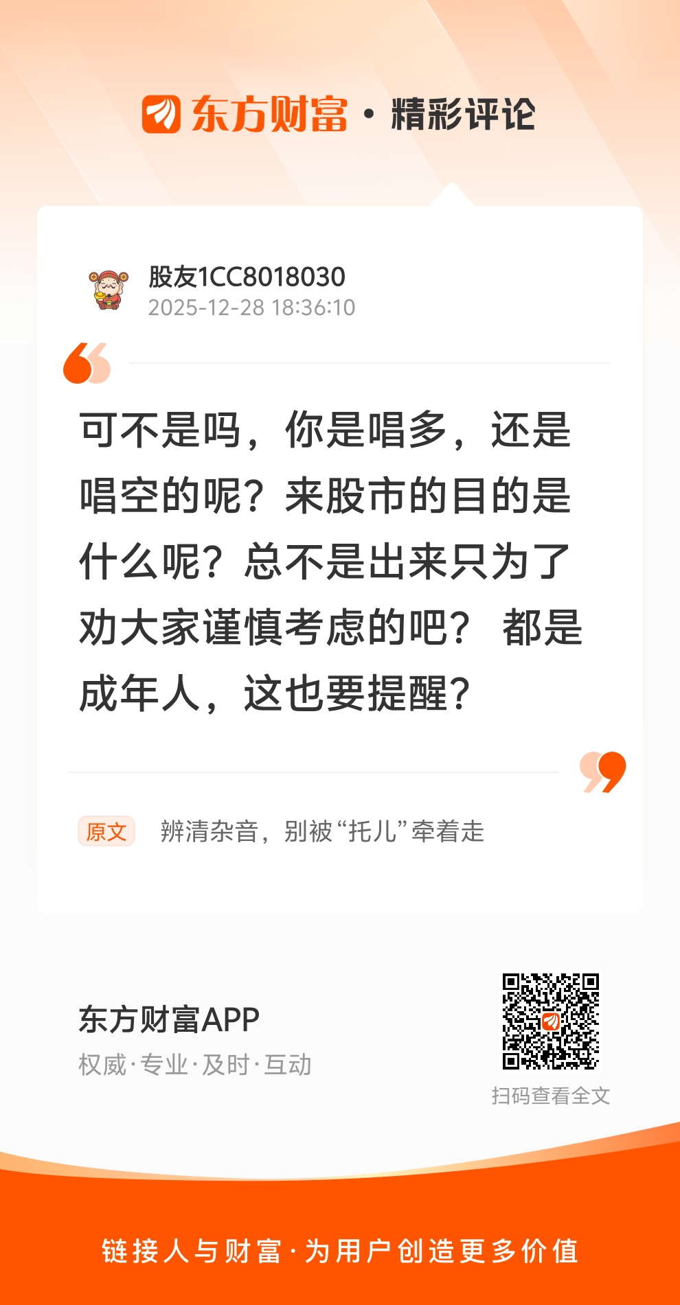 温馨提示: 1.根据《证券法》规定,禁止编造、传播虚假信息或者误导性信息,扰乱证券市场;2.用户在本社区发表的所有资料、言论等仅代表个人观点,与本网站立场无关,不对您构成任何投资建议。用户应基于自己的独立判断,自行决定证券投资并承担相应风险。《东方财富社区管理规定》