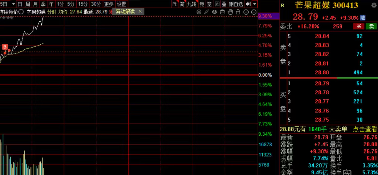$芒果超媒(SZ300413)$ 前几天aigc概念异动,手上拿了因赛本不想在多加仓,今早数字媒体又动了,底部跳空抢了芒果