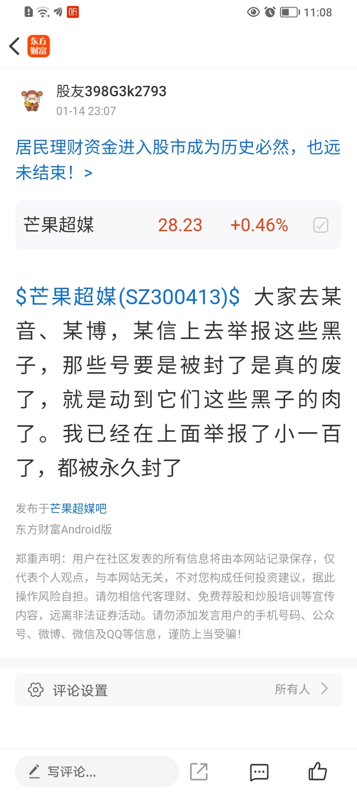 温馨提示: 1.根据《证券法》规定,禁止编造、传播虚假信息或者误导性信息,扰乱证券市场;2.用户在本社区发表的所有资料、言论等仅代表个人观点,与本网站立场无关,不对您构成任何投资建议。用户应基于自己的独立判断,自行决定证券投资并承担相应风险。《东方财富社区管理规定》