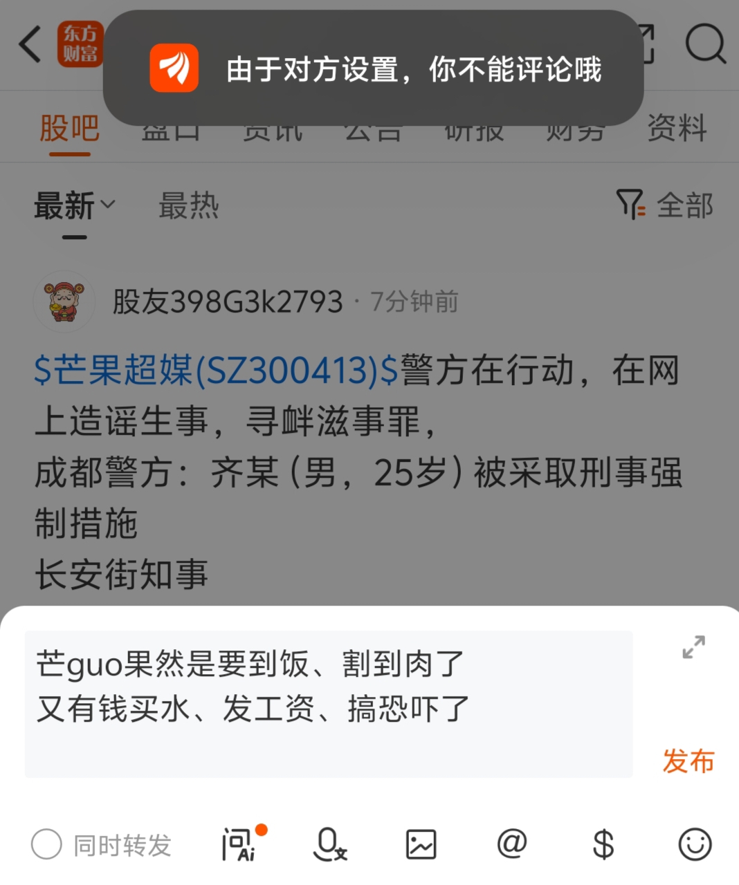 温馨提示: 1.根据《证券法》规定,禁止编造、传播虚假信息或者误导性信息,扰乱证券市场;2.用户在本社区发表的所有资料、言论等仅代表个人观点,与本网站立场无关,不对您构成任何投资建议。用户应基于自己的独立判断,自行决定证券投资并承担相应风险。《东方财富社区管理规定》