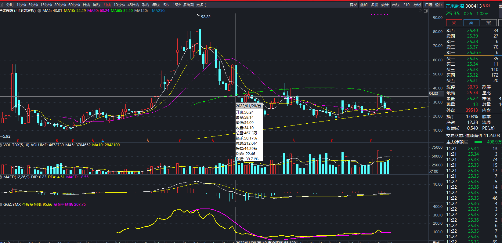 芒果超媒这B从月k线来看,从2022年1季度到现在,4年了,基本没涨,太狗了这股