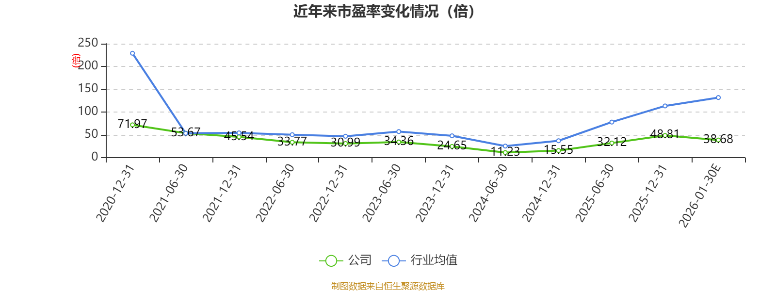 以本次披露业绩预告均值计算,公司近年市盈率(TTM)图如下所示: