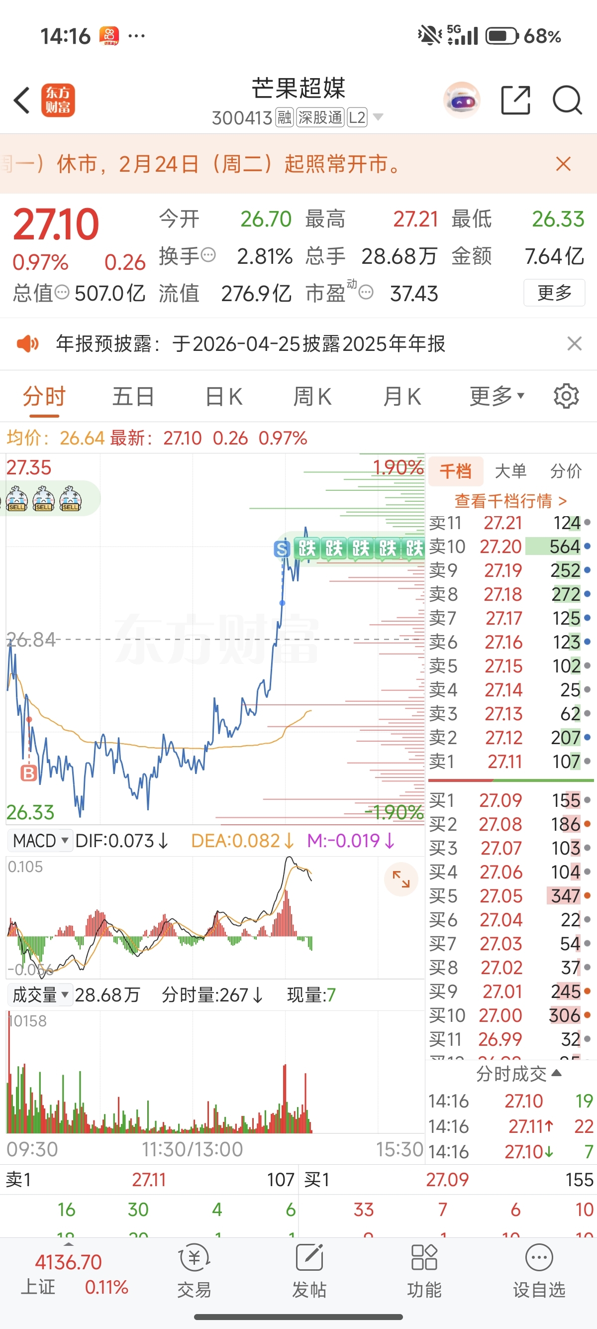 $芒果超媒(SZ300413)$ 回本困难,做T还卖飞了